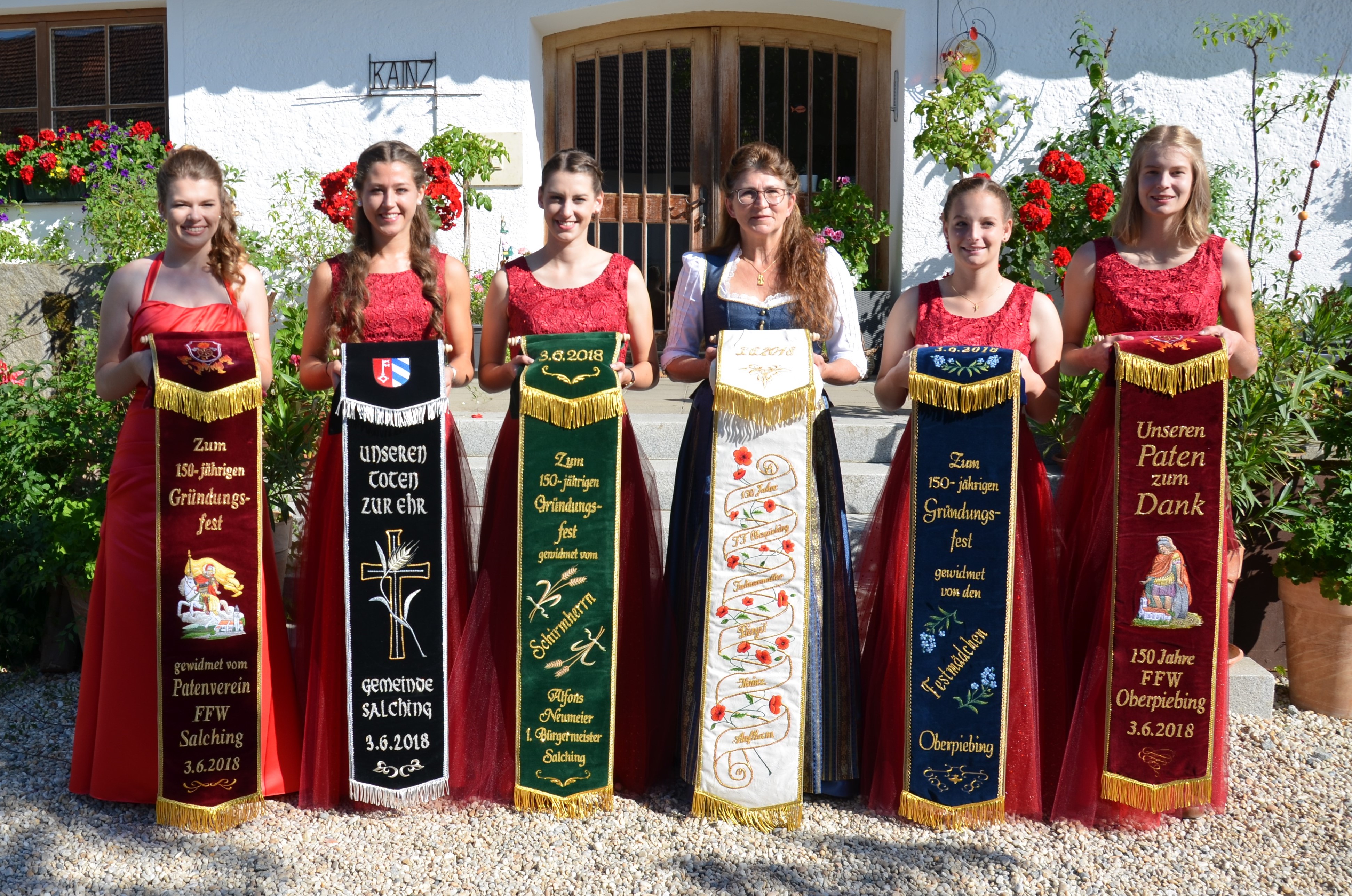 Am Sonntagmorgen begrüßte ein bayrisch-blauer Himmel die ankommenden Vereine und Festgäste. Die Dorfbevölkerung hatte Häuser und Zäune entlang des Marschweges beflaggt und mit Girlanden geschmückt. Besonders herausgeputzt auch der weitläufige Hof von Bernhard und Hermine Gierl, wo nach dem Kirchenzug der Festgottesdienst stattfand. Auf dem von Obst- und Gartenbauverein Salching liebevoll geschmückten Altar feierten Pfarrer Dr.Raphael Mabaka und Pfarrer i.R. Ludwig Bumes, mit den Vereinen und den Ehrengästen, darunter Landrat Josef Laumer und den Bürgermeistern von Aiterhofen, Manfred Krä, Leiblfing Wolfgang Frank, Irlbach, Peter Bauer und Oberschneiding, Ewald Seifert Gottesdienst, der von der Gruppe Tau musikalisch gestaltet wurde. In seiner Predigt befasste sich Pfarrer Mabaka mit dem heiligen Gebot des Sabbats, das die Sonntagsarbeit verbietet. Doch Jesus lehrt uns, den Menschen in den Mittelpunkt zu stellen, ihm im Konfliktfall zu dienen und nicht dem Gesetz. „ Seit 150 Jahren wirkt die FFW Oberpiebing in ihrer Gemeinde. In dem Leitspruch – Gott zur Ehr`, dem Nächsten zur Wehr`-, ist die Feuerwehr der von Jesus genannten goldenen Regel im Evangelium gefolgt und hat eine zeitlos adäquate Fassung erhalten. Unsere Feuerwehren leisten ihren Dienst nicht um ihrer selbst willen. Nein, sie tun das, um den Nächsten zu dienen und damit auch Gott die Ehre zu geben. Ohne ihren ehrenamtlichen Einsatz wäre unser Gemeinwesen schlichtweg nicht denkbar. Als Mann der Kirche sage ich Ihnen meinen Dank für ihren selbstlosen und beispielhaften Dienst der Nächstenliebe“, sagte der Prediger. Es folgte dann die Segnung der Fahnenbänder und der Fahne. Dabei trugen Festmädchen jeweils einen Prolog vor und hefteten dann die Bänder an die Fahne.