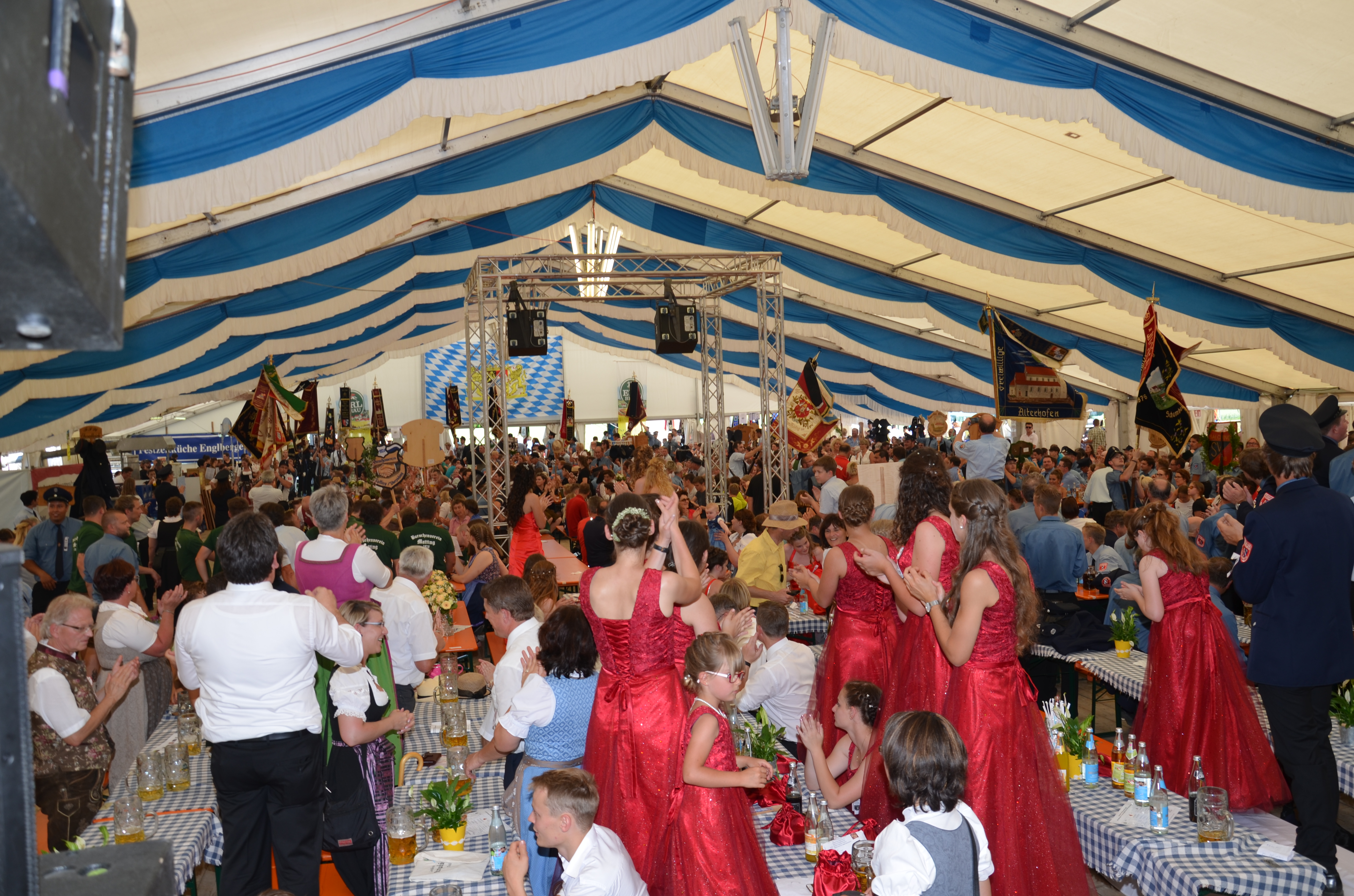 Am Samstagnachmittag wurden die Festmädchen von zu Hause abgeholt und zuletzt auch noch der Schirmherr mit dem Taferlbuben Christian. Zusammen mit dem Patenverein ging es per Bus zur Fahnenmutter Birgit Kainz nach Aufham, wo die Gäste in umgebauten ehemaligen Stallungen bei bester Bewirtung die folgenden Stunden verbrachten. Zum Bayerischen Abend war dann alles wieder im Festzelt versammelt, wo die Musikkapelle „Kaiserschmarn“ zum Tanz aufspielte.